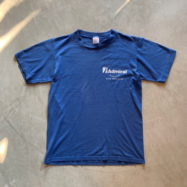 - 【Ladies or Kids】80s USA製 JERZEES「Admiral」プリントTシャツ 青■ビンテージ アメリカ古着 レディース キッズ 企業