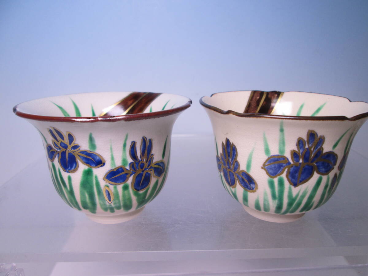 - ☆お料理屋さんの器 嘉豊作 乾山写 色絵 菖蒲文 向付 二客 小鉢/茶懐石/割烹/日本料理