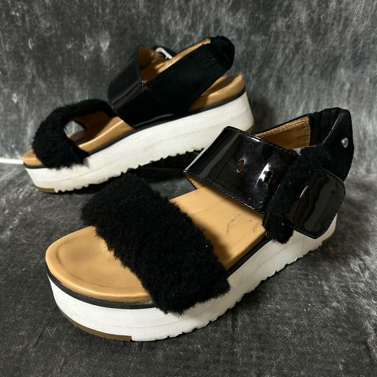 - UGG Le Fluff アグ ル フラッフ エナメルサンダル ストラップサンダル ファー 厚底 22cm ブラック *ES
