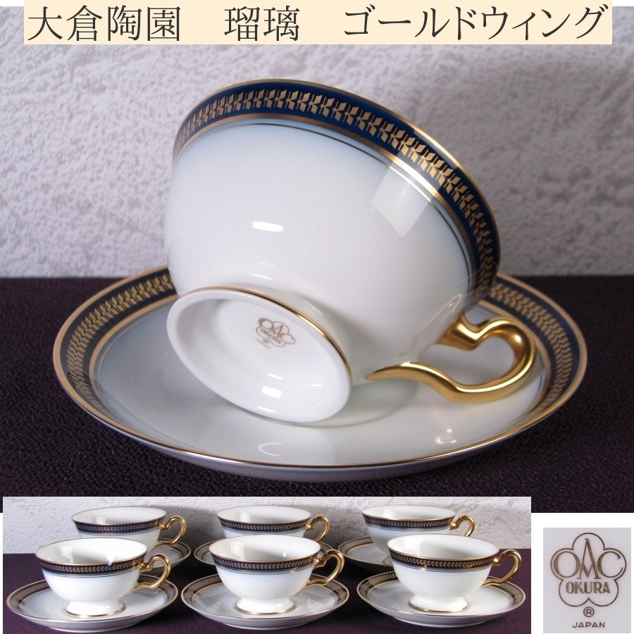 - 大倉陶園 瑠璃 ゴールドウィング カップ&ソーサー 極美品 ※一客ソゲ 生産終了品/25h046