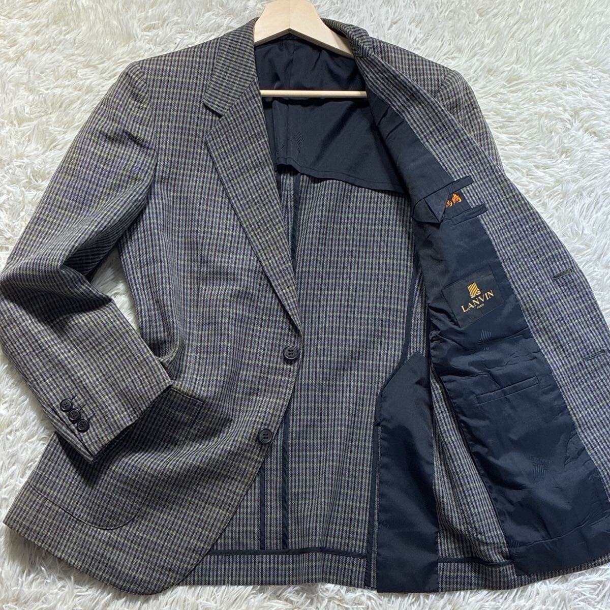 - 極美品◎LANVIN PARIS ランバン パリス テーラードジャケット カーキ チェック S〜M相当 メンズ 紳士服 ビジネス 背抜き