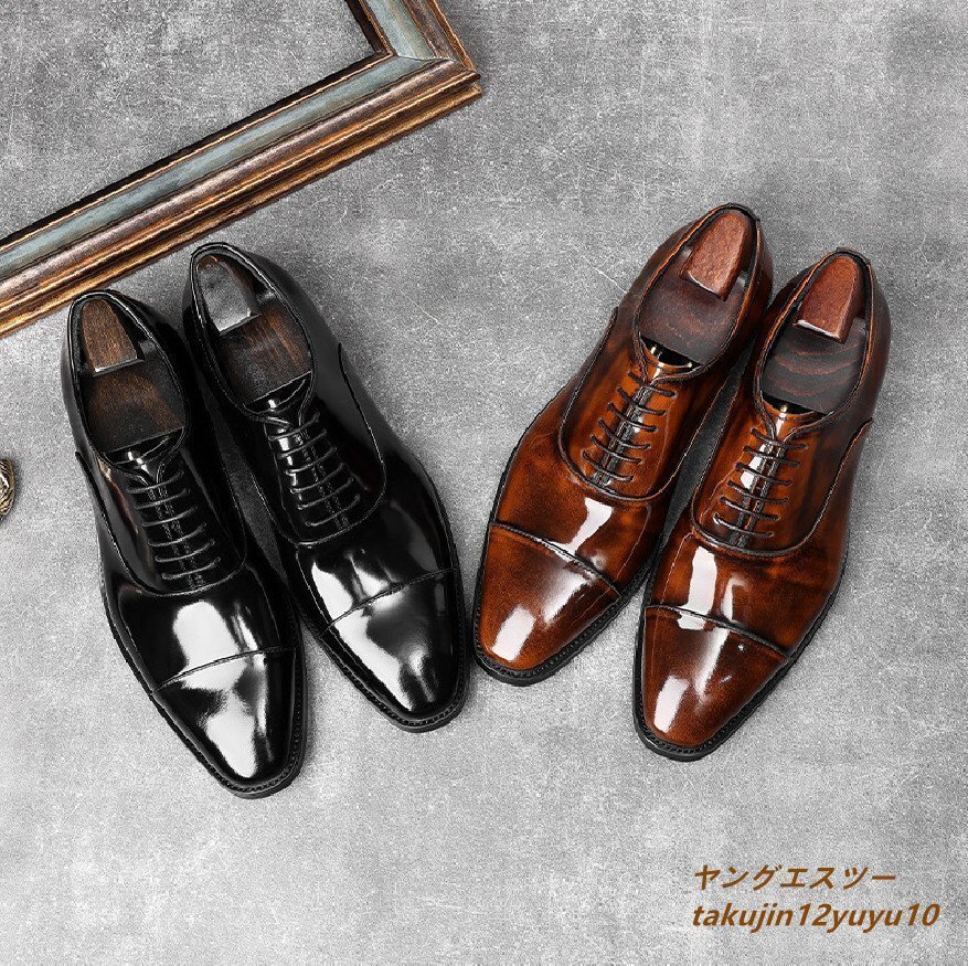 - 8万◆最高級 ビジネスシューズ 新品 メンズ 本革 レザーシューズ 正規品 職人手作り 牛革 手塗仕上げ 超希少 紳士靴 革靴ブラック 27.5cm