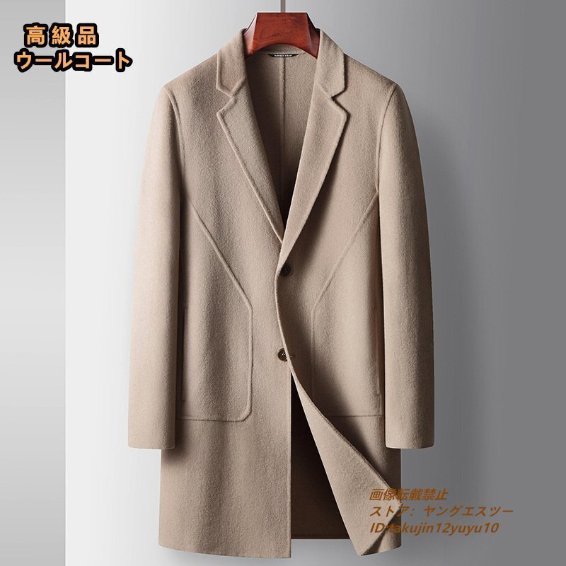 > 最上級*15万 ビジネスコート ロングコート 高級 ウールコート セレブ*WOOL 厚手 カシミヤコート 紳士スーツ チェスターコート ベージュ L