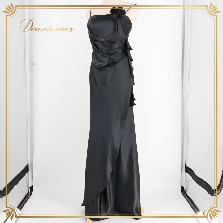> パーティドレス ワンピース ドレス main blutt 黒 パーティ 発表会 イベント ブラック系 真っ黒 無地 シンプル キャミソール サテン 舞台