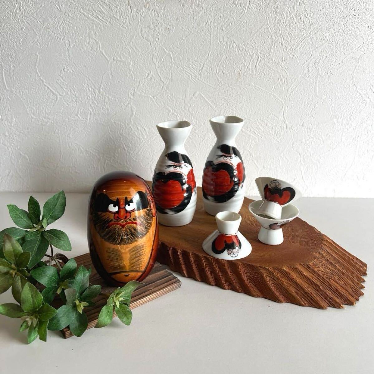 - wasabi k796 縁起物 しかめっ面の達磨大師 達磨こけし・酒器セット(徳利・猪口)だるま「七転び八起き」縁起物 和食器 和のインテリア