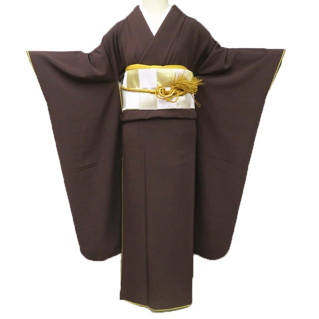 - 振袖 着物 色無地 中古 成人式 結婚式 結納 焦茶色 身丈162cm 裄65cm M きもの北條 A1263-5