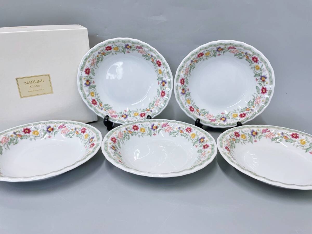 - 未使用 ナルミ NARUMI カレー&パスタ皿 5枚セット 楕円皿 楕円深皿 カレー皿 パスタ皿 洋食器 陶器 花柄
