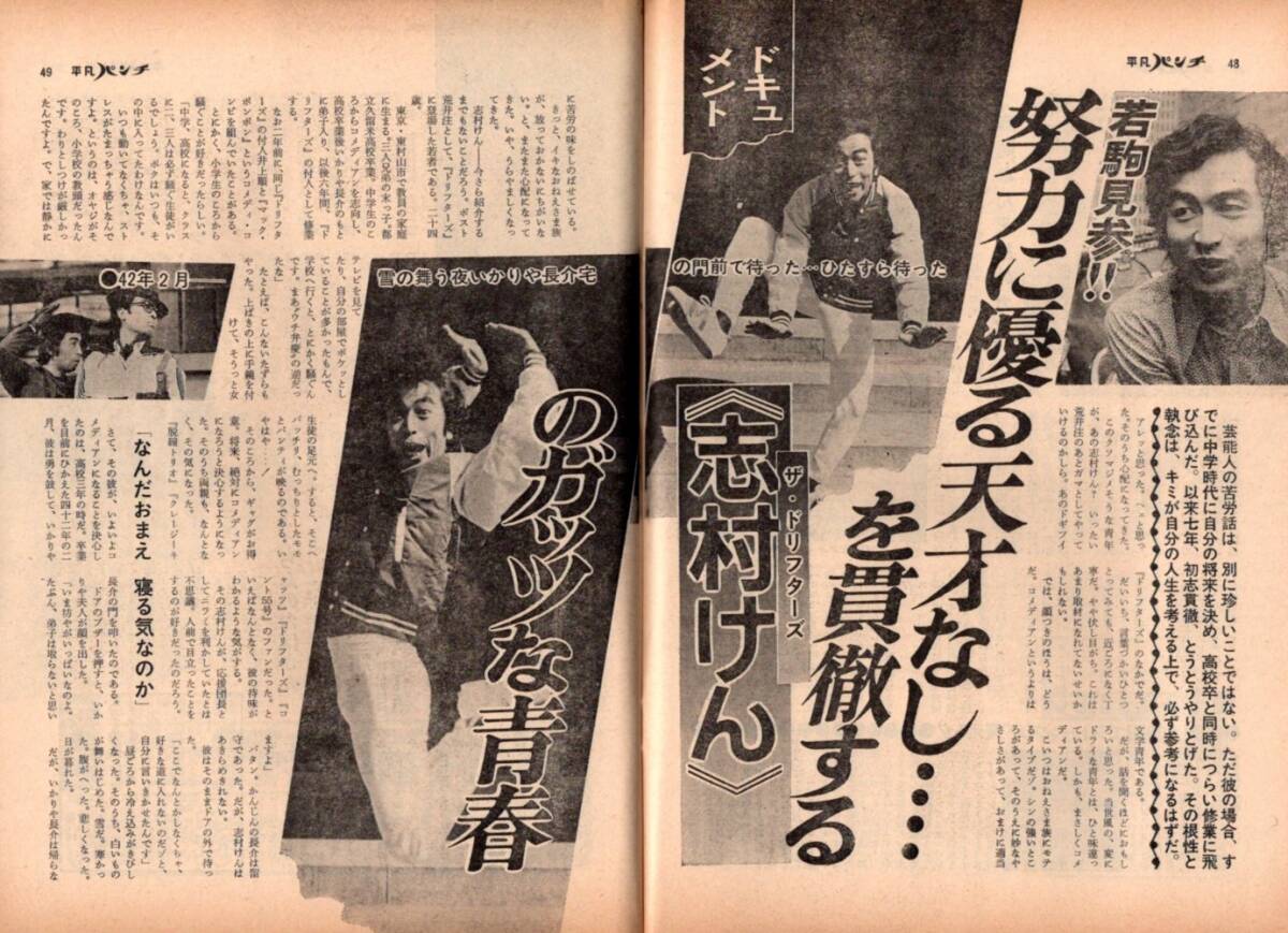 > s3871 平凡パンチ 1974年 昭和49年 志村けん 菅原文太 ガッツ石松 優雅 森川千恵子 スージー 新藤美樹 ミロール 森まどか ハンクアーロン
