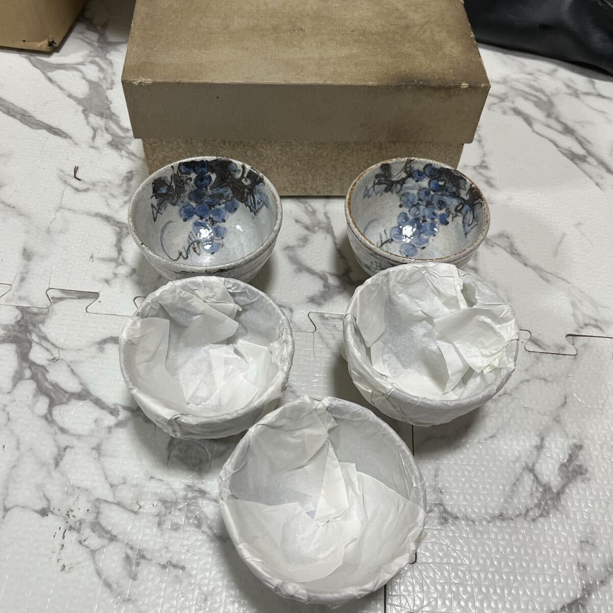 - 汲出揃 ぶどう 5個セット 青い花模様 ぶどう 腕 食器
