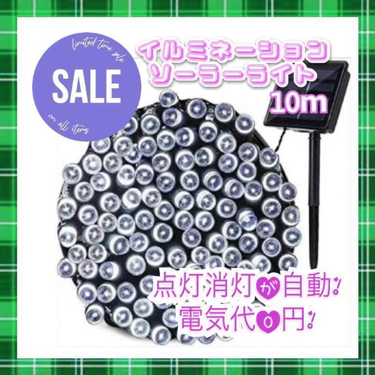 - ★人気商品★ イルミネーションライト 省エネ ソーラー充電 10m ホワイト