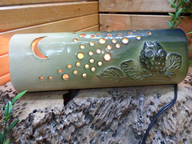 - む126.ふくろう照明 間接照明 インテリア 陶器製 『志』 透かし彫り ランプ