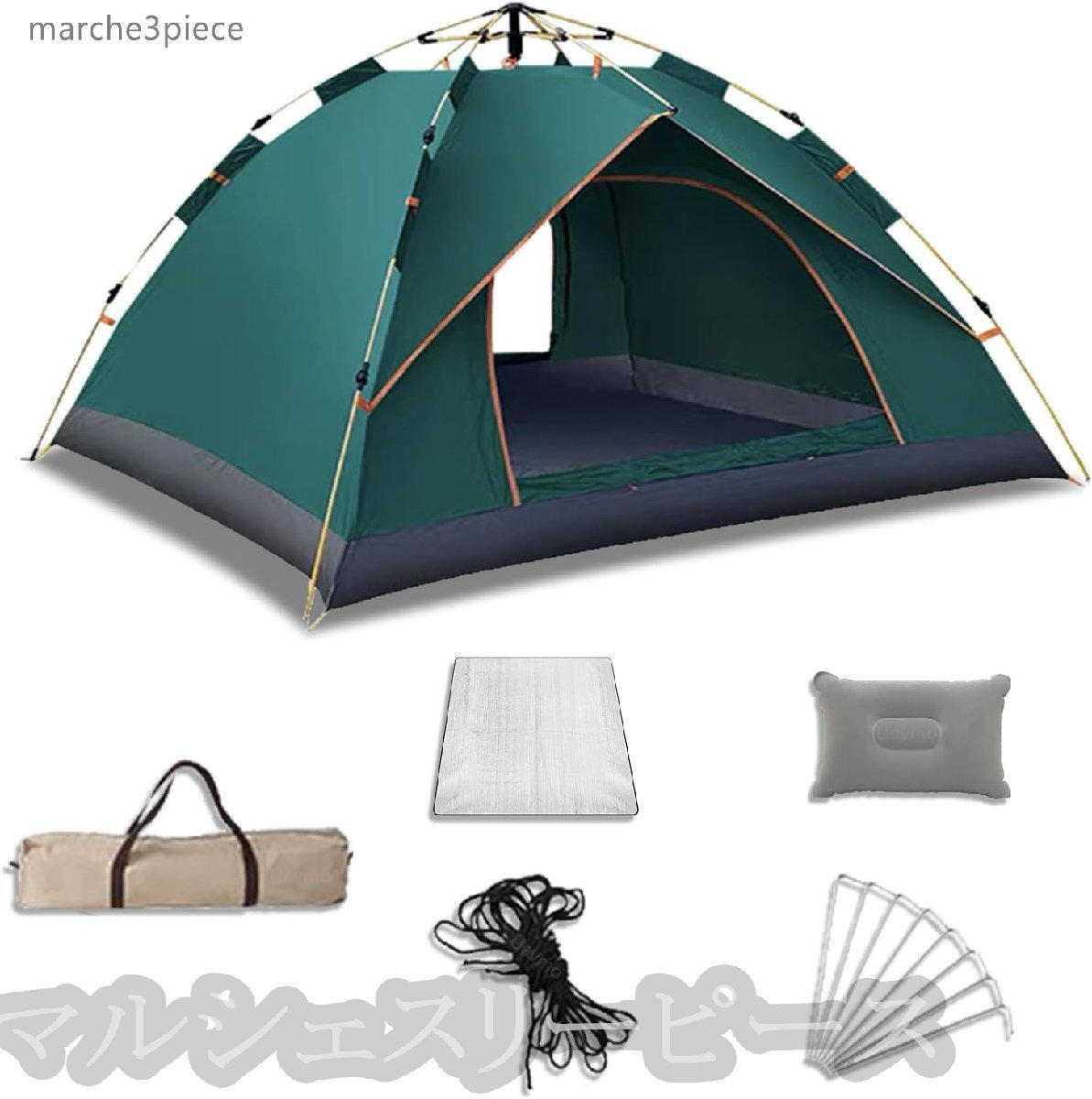 - ワンタッチテント 2-3人用シルバーコーティング 自動開閉5秒設営UV高遮光防風防水耐水圧3000mm 四面メッシュ 超軽収納袋付きグリーン