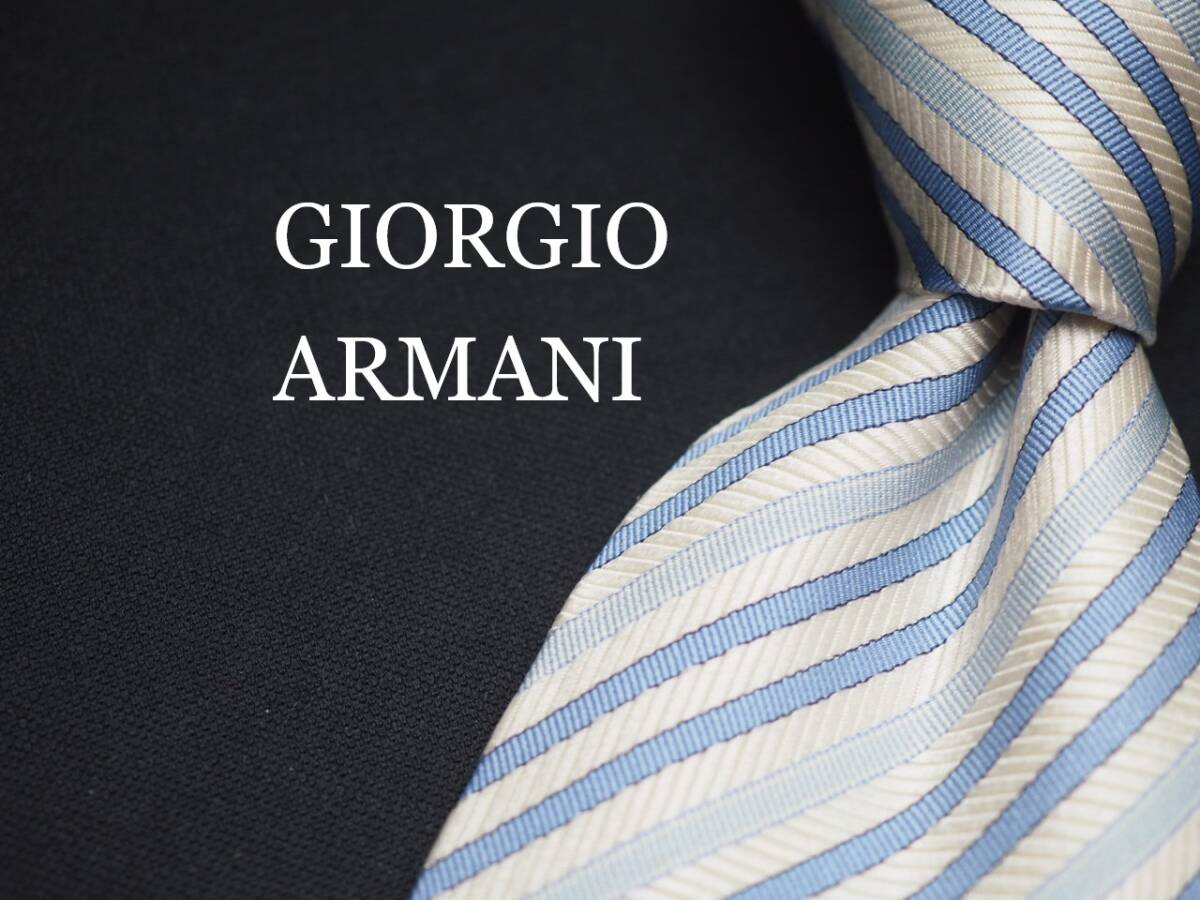 - 美品【GIORGIO ARMANI ジョルジオアルマーニ】 F1842 ホワイト系 SILK ブランド ネクタイ 古着 良品