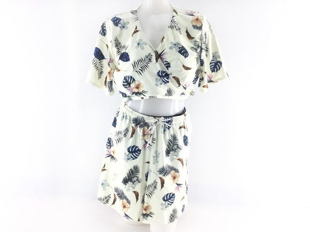 - 半袖カシュクールビキニ水着 3点セット レディース水着 大きいサイズ 5L アイボリー