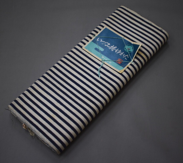 - A34-6【凛々】即決 新古品 本染 ゆかた反物 白 紺 縞 未仕立て品