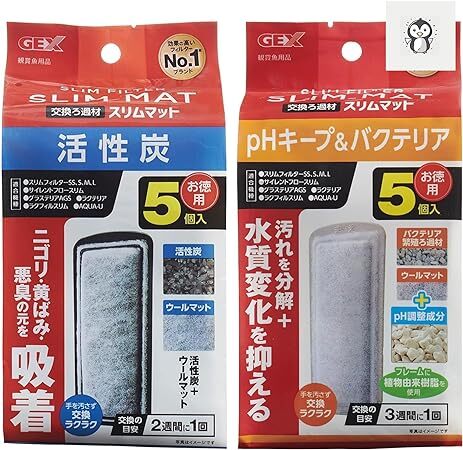 - 送料無料 GEX スリムフィルター 活性炭スリムマット 5個入 + pHキープ&バクテリアスリムマット5個入 のセット