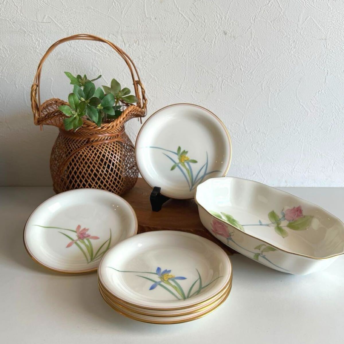 - wasabi k803 有田焼の老舗 香蘭社 プリンセスローズ バスケット・オーキッド 銘々皿(色違い5枚)しなやかで気品ある美しさの逸品