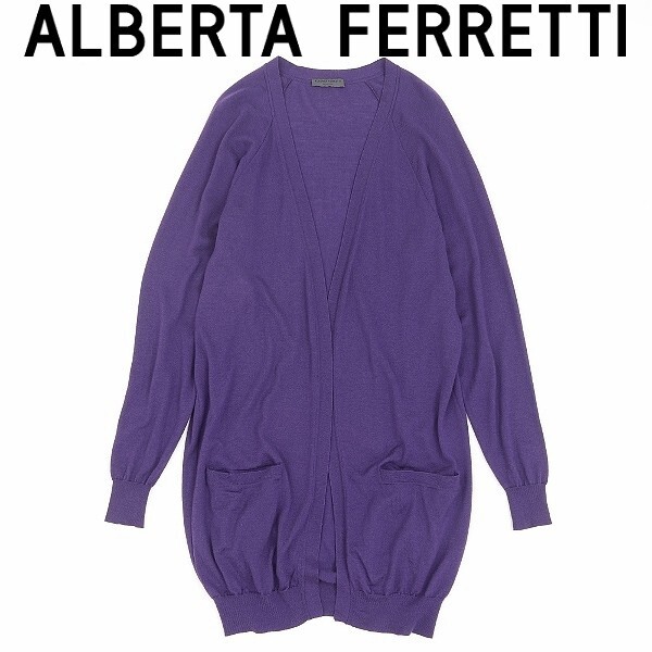 - 【HA94】◆ALBERTA FERRETTI アルベルタ フェレッティ ボタンレス ウール ニット ロング カーディガン 紫 パープル 40