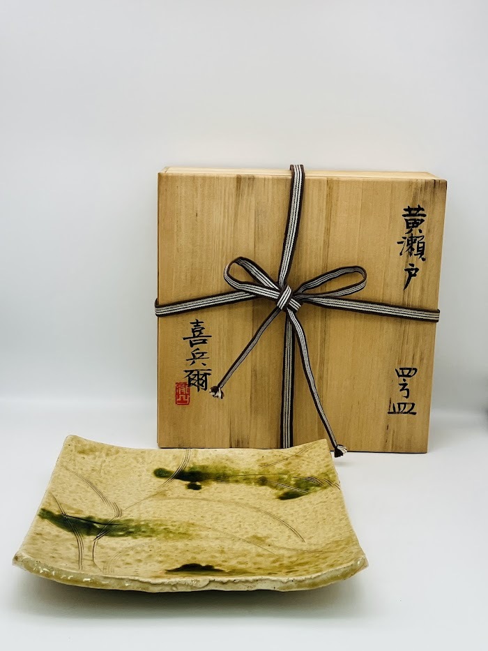 - 【本物保証】瀧口喜兵爾『黄瀬戸 四方皿』陶磁器 現代の名工 加藤十右衛門に師事 岩ヶ根窯 R7-0131
