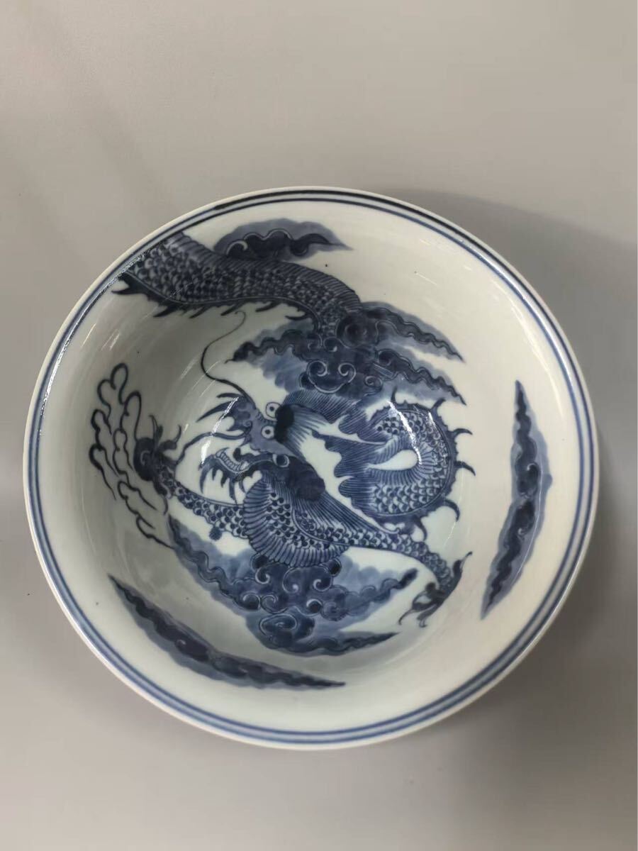 > 中国古美術 清時代 青花 雲龍紋 茶碗 陶磁器 骨董 古玩 時代物 中国美術 古美術 骨董品 唐物 当時物 gt26