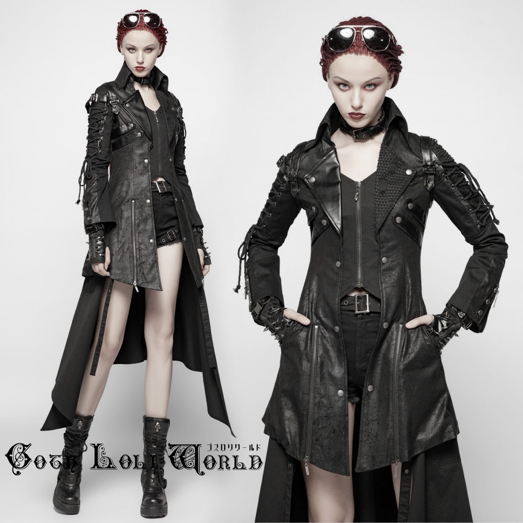 - Y-349FBK-L アシンメトリーカラーレースアップミドル ジャケット レディース 黒色 ゴスロリワールド ゴシック パンク ロック ロリィタ V系