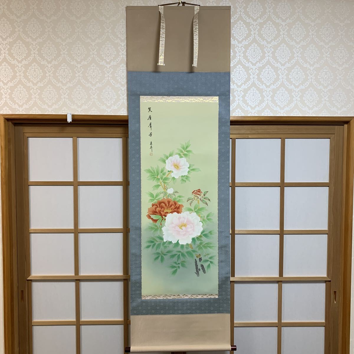 - 掛軸 模写 静物画牡丹 木箱有り No160