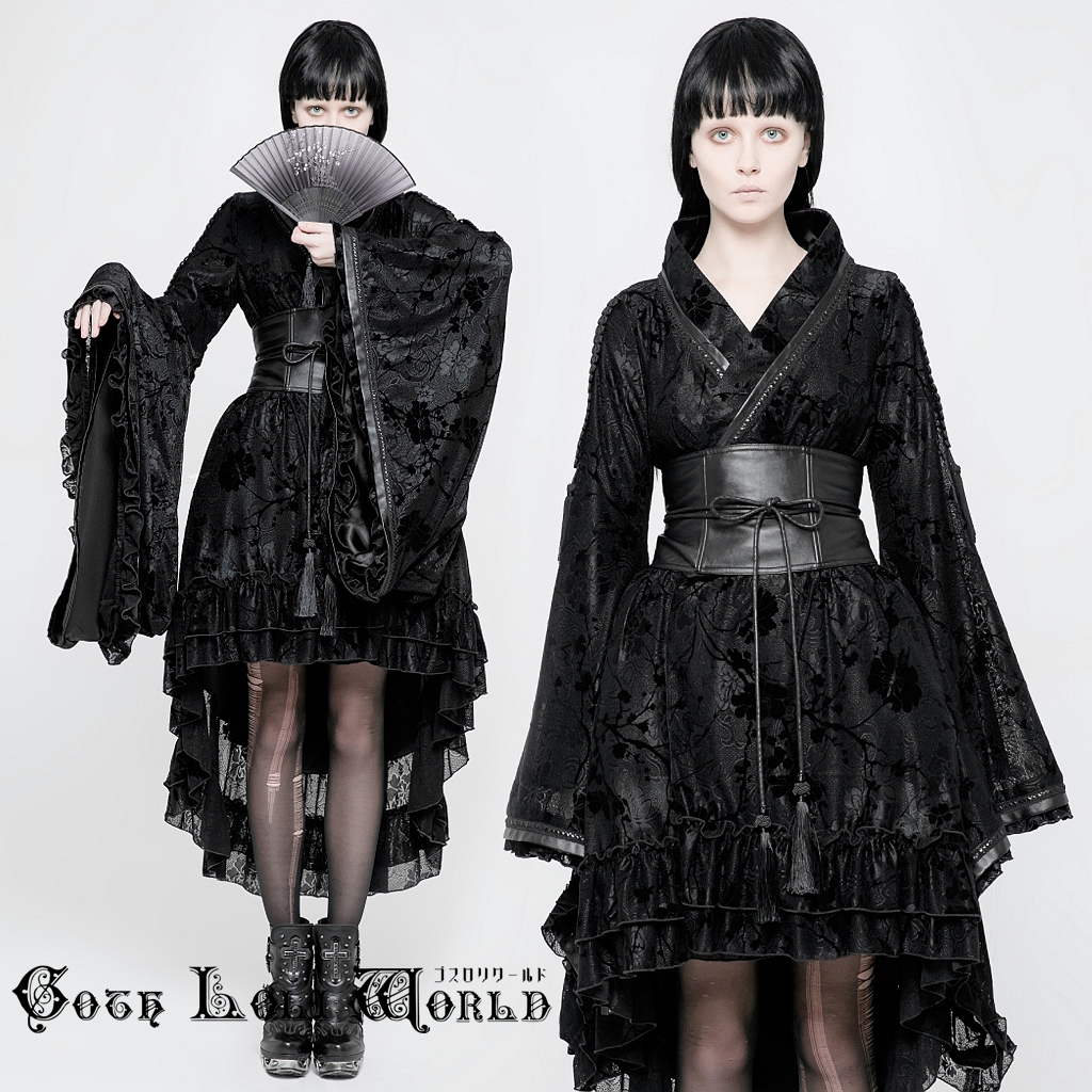 > WLQ-084LQF-BK-XS-S 合皮帯リボンタッセルテールカット 着物 ワンピース ゴスロリワールド ゴシック パンク ロリィタ ビジュアル系 V系