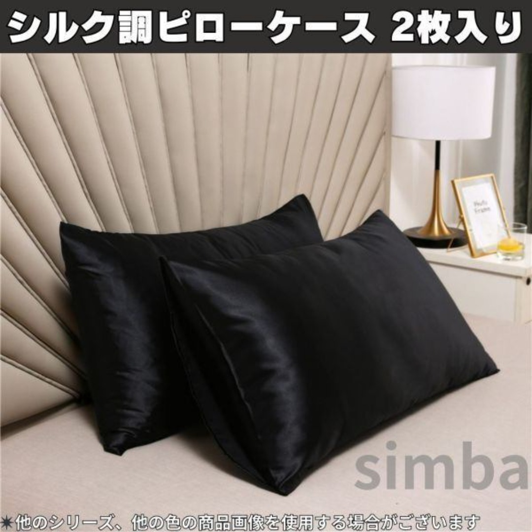 - ピローケース シルク風素材 2枚入り ブラック 枕カバー 柔らか レイアウト