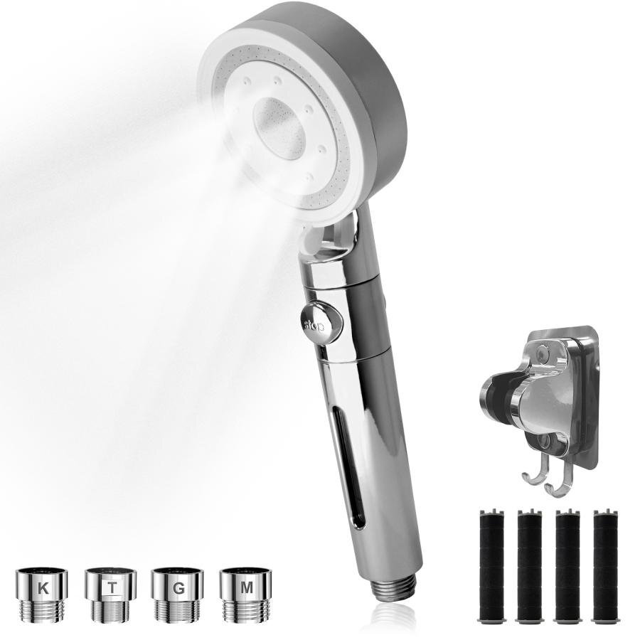 - ONE STEP シャワーヘッド 節水 ナノバブル 節水増圧 増圧 美肌 塩素除去 ミスト 節水 高水圧 手元止水 塩素 6段階 シルバー