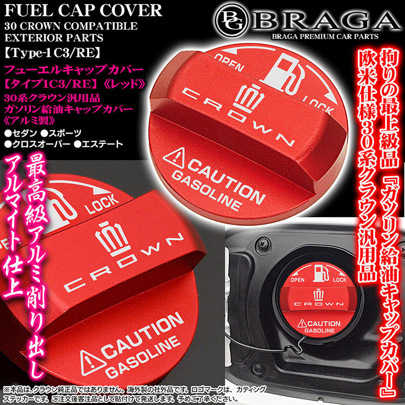 - スポーツ/エステート/タイプ1C3/RE/30系クラウン ステッカー付/給油フューエル キャップカバー/アルミ製/レッド/互換品/BG BRAGA