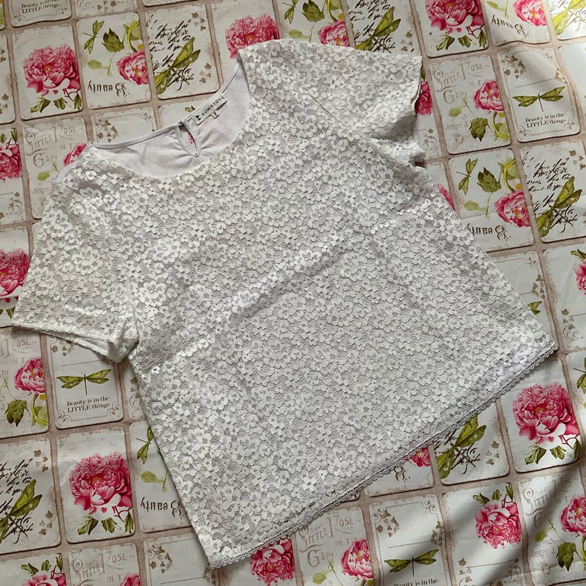- ●組曲♪可愛い♪素敵♪半袖カットソー●大きいサイズ7(15号17号)●未使用に近い●白ホワイト♪前面レース●Tシャツ●美品●