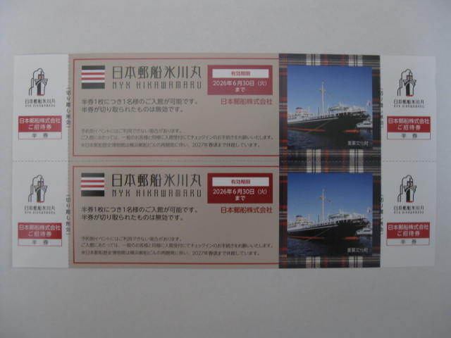 - 送料85円◆日本郵船 株主 優待 氷川丸 招待券 2枚綴り(4人分)◆有効期限2026年6月30日
