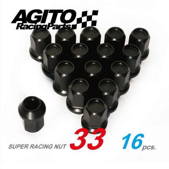 - 【16本】AGITO 非貫通 レーシングナット L33 17HEX M12xP1.5 60°テーパー座 クロモリ/トヨタ マツダ ホンダ 4穴車