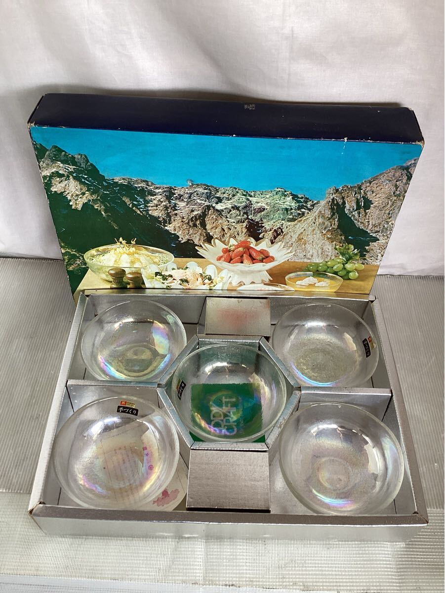> 【K0644】KURATA CRAFT GLASS 手作り ガラス食器 中鉢 5点セット 箱入り未使用