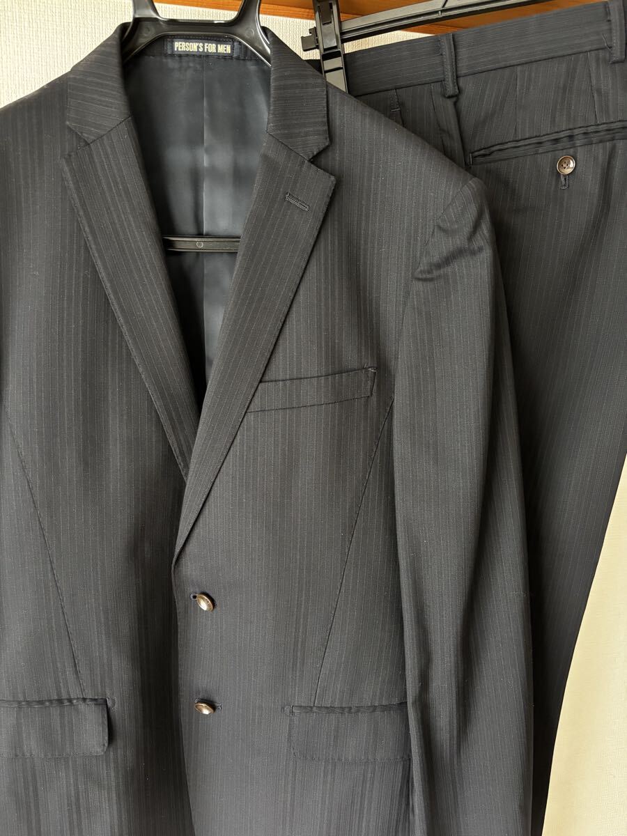> 中古 おススメ オシャレ YA6 PERSON'S FOR MENパーソンズフォーメン スーツ セットアップ ブラック 美光沢 スーツ