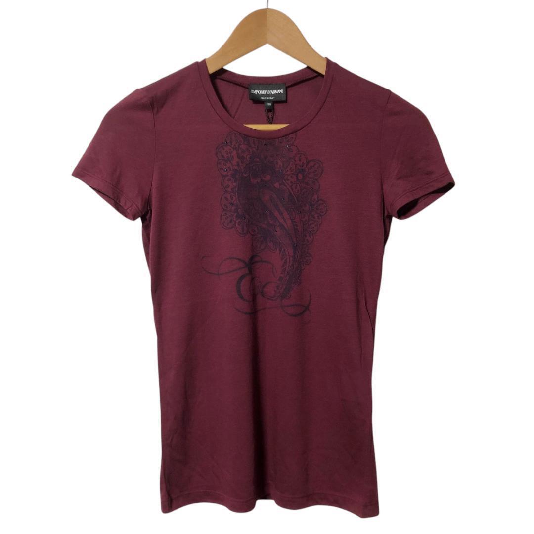 - EMPORIO ARMANI エンポリオアルマーニ Tシャツ 半袖 プリント ストレッチ 38 ボルドー イタリア製 レディース M5