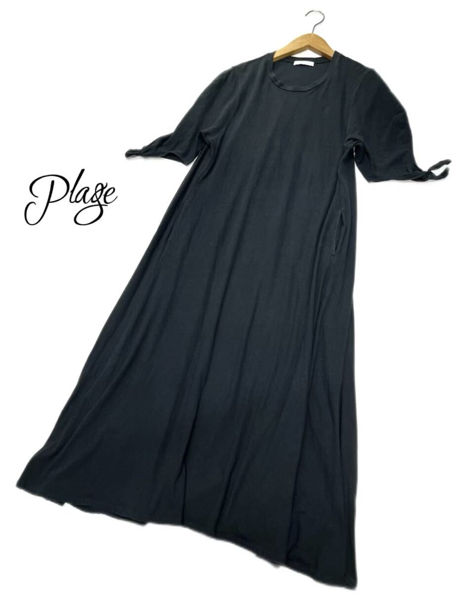 > Plage de charme★プラージュ★ベイクルーズ 日本製(38)ポケット付 Aライン マキシ丈 ロング ワンピース/黒