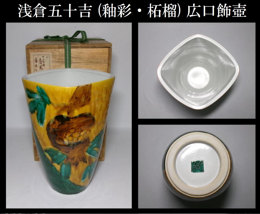 - 【真作保証】朝倉五十吉 (彩釉・柘榴) 広口飾壺