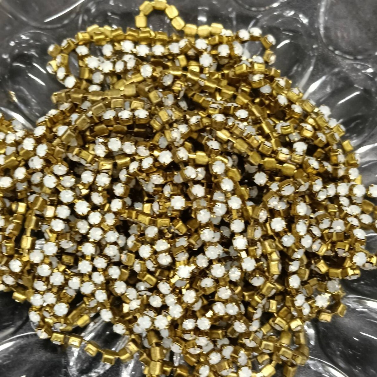 - ☆ほぼ未使用 SWAROVSKI スワロフスキー ヴィンテージ ルース 約142g カップチェーン 連爪 3mm 乳白色×ゴールド色 裸石 アクセ B-336