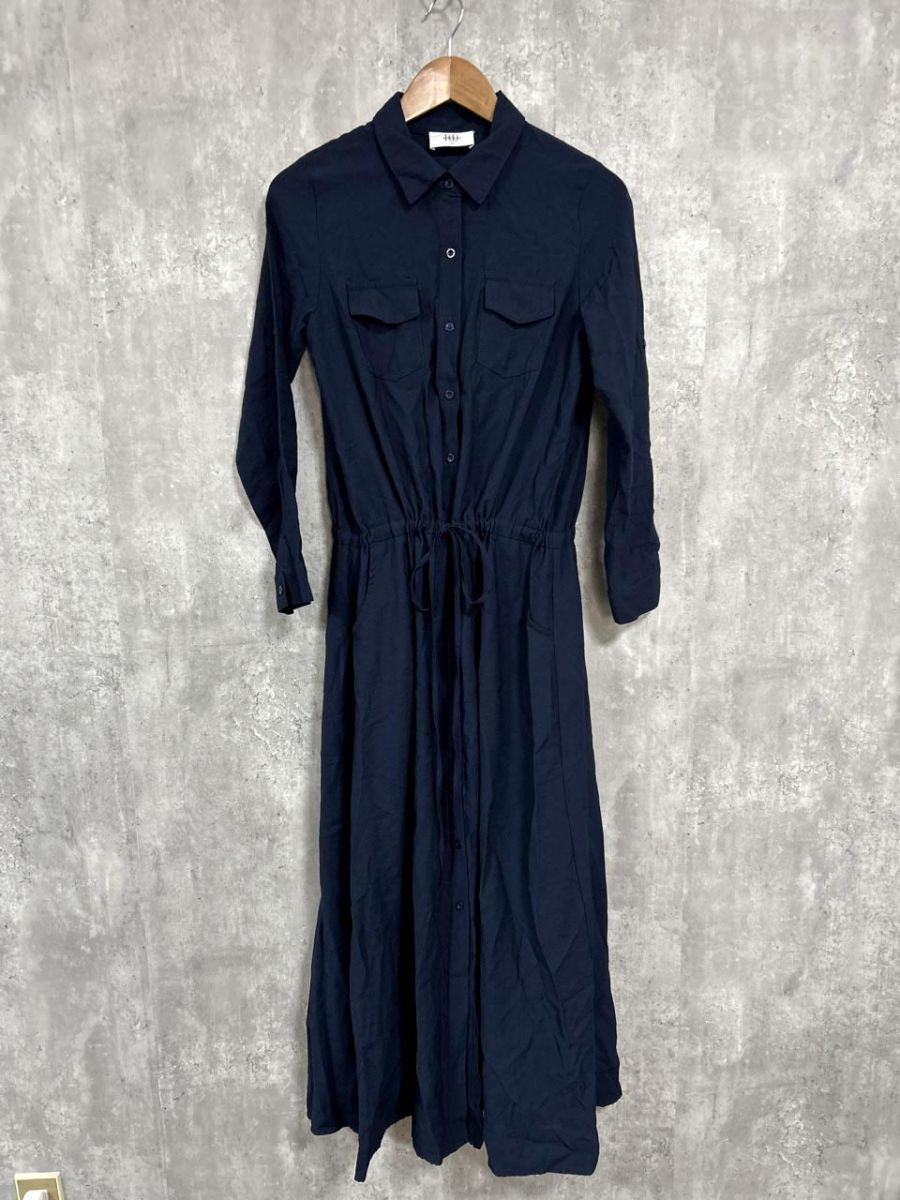 - HUG.U ウエストリボン ロング シャツ ワンピース sizeM/濃紺 ■◇ レディース