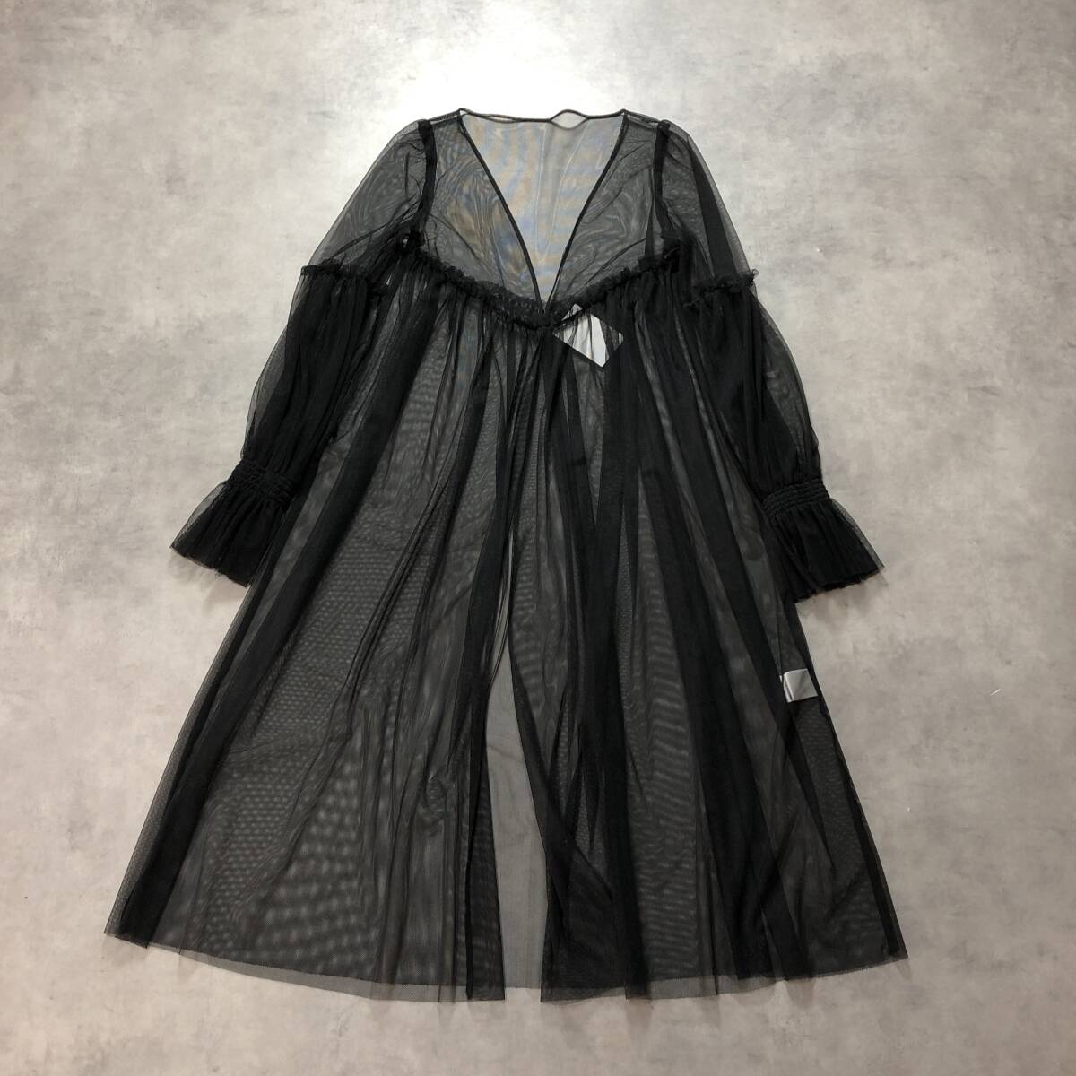 - WQ675●HERENCIA:シースルーギャザーロングカーディガン ●38●黒 シアーチュールガウン ヘレンチア