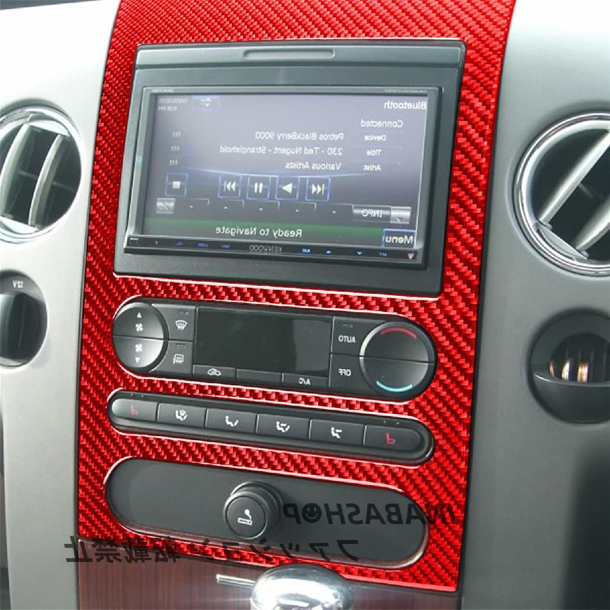 - レッドカーボンファイバーインテリアパネルフレームカバートリムフォードF150 2004-2008と互換性あり(CDメディアコントロールパネル)