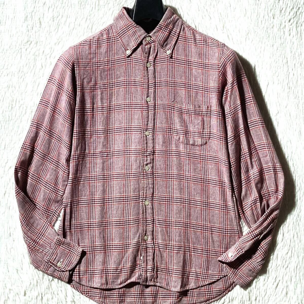 - INDIVIDUALIZED SHIRTS★USA製★ウィンドウペン グレンチェック 長袖BDシャツ ボタンダウン 赤 14.5 32 インディビジュアライズドシャツ