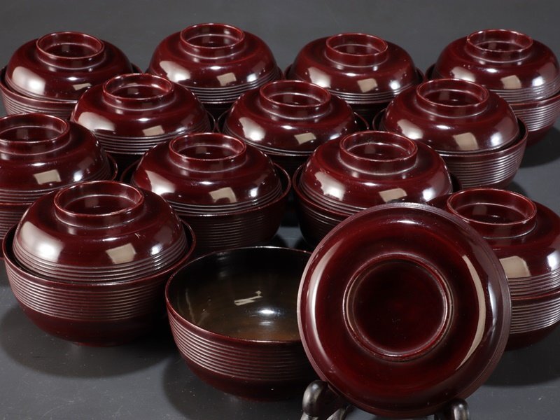 ■【夢讃岐】木製 筋目・吸物椀 13客揃(蓋13枚)Φ110 H55 wa939 ■ 商品詳細 御覧頂き、ありがとうございます。 【夢讃岐】木製 筋目・吸物椀 13客揃(蓋13枚)Φ110 H55 wa939 ○商品状態○経年あります。小傷みあるもの含みます。椀13客揃(蓋13枚)。 状態に関しては,充分に画像で確認の上、クレームの無い様に御入札下さい。 ○サイズ○ Φ--mm/高さ--mm ぐらい画像参照ください。 ○御一読下さい○2025年で、昭和100年です。私共の扱う品は、大半の物が半世紀から一世紀以前の品です。 新品と表記しない限り,確実に経年有りますので, 新品とは違い、擦れアタリ等は有るとお考え下さい。 また細かい見落とし等も時代古物とお考えの上御容赦下さい。 気になる箇所は、画像にもアップ致しますので、ご了承の上御入札下さい。 記載・画像掲載されてない,見落としに関しては、常識の範囲で誠意対応致します。 他にも漆器をメインに出品しておりますので、ぜひ御覧下さい 。