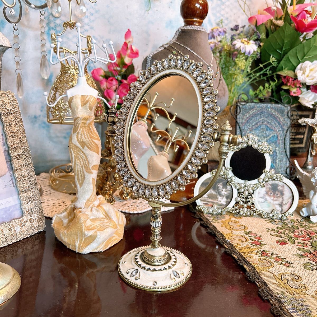 - アンティーク雑貨エレガントなスタンドミラーオーバル ビジュー#店舗什器#スタンドミラー#アンティークstyle