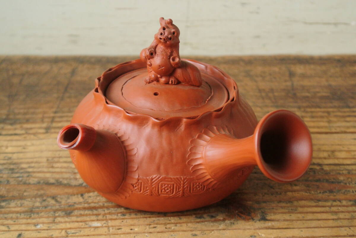 伯勇造 常滑 狸細工摘み 朱泥 急須
