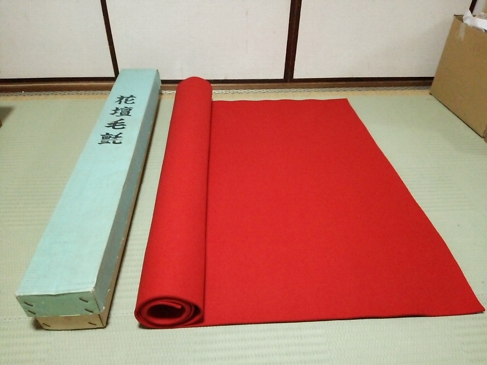 - ★【一美堂】★茶道具★赤『花壇 毛氈』毛せん★紙箱付★厚みあり 特上品★