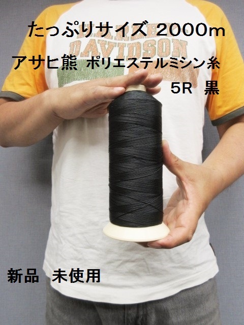 > 5番 新品 アサヒ熊 皮革 厚物 バッグ シート用 ボンド加工 ポリエステルミシン糸 黒 2000m 太めの糸(ゴーセン サンベアー ビニモ 手縫い