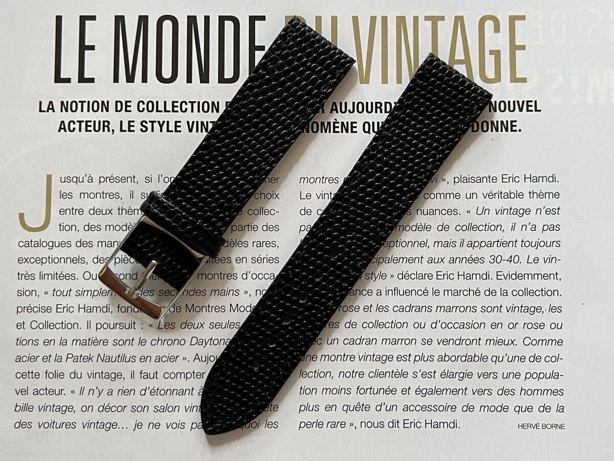 - 20mmユーロストックfromフランス レザー時計ベルト ブラック エンボスレザー メーカー在庫未使用デッドストック品 ヴィンテージA20-1