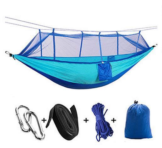- 送料無料 匿名 蚊帳付き 虫よけ ハンモック 2人用 耐荷重200kg ブルー
